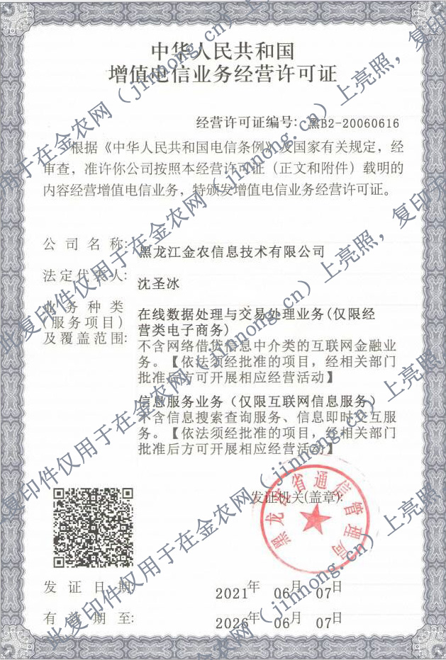 《中華人民共和國增值電信業務經營許可證》編號:黑B2-20060616號 哈公網監備2301001147 違法信息舉報電話:0451-88003358 舉報郵箱:jubao@jinnong.cn 內容舉報